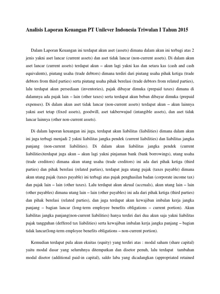 Analisis Laporan Keuangan Pt Unilever Seputar Laporan