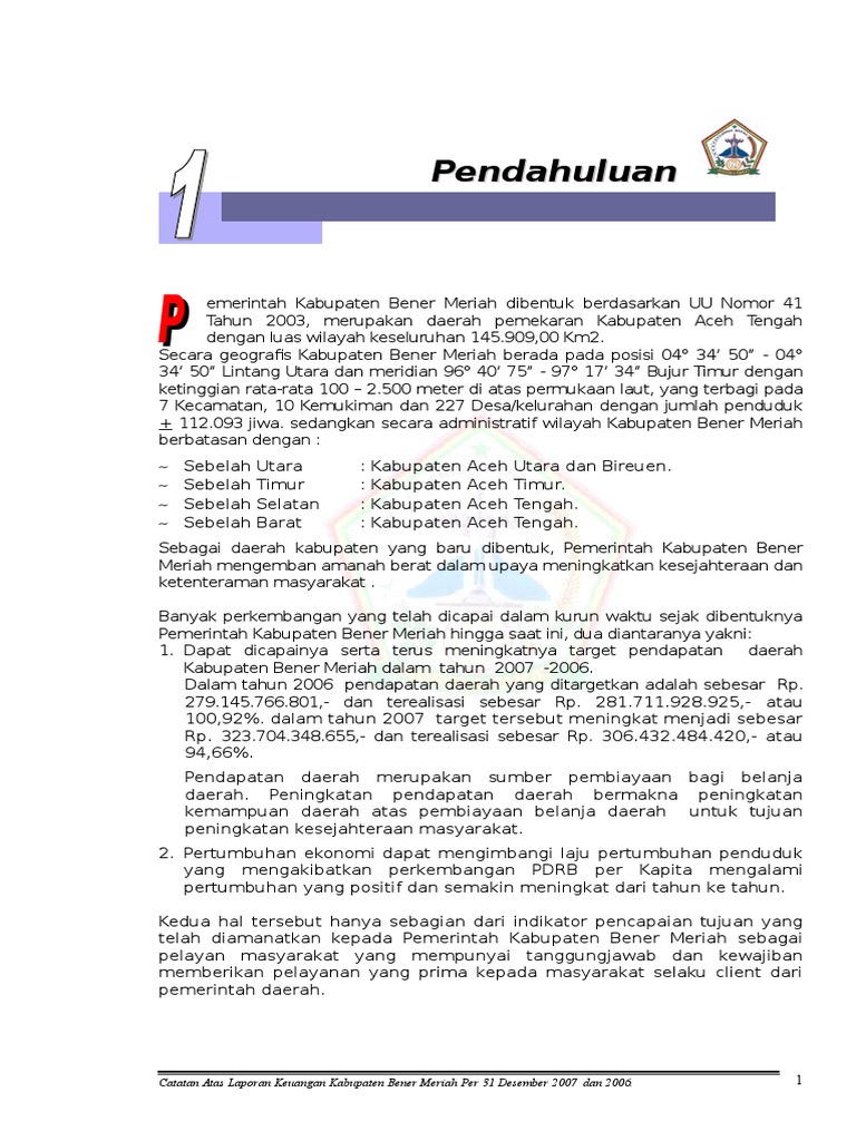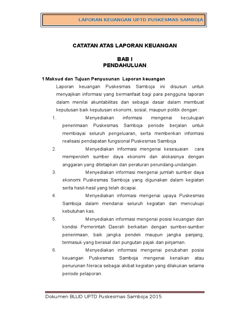 CATATAN ATAS LAPORAN KEUANGAN BAB I PENDAHULUAN . Catatan