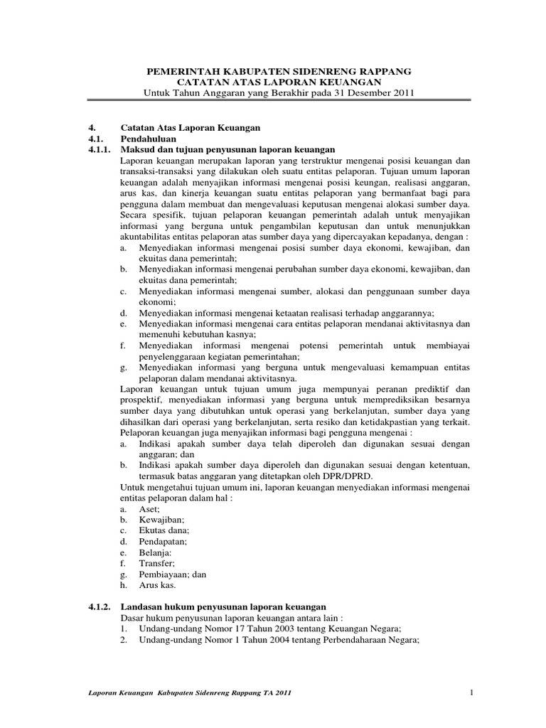 Catatan atas laporan keuangan. Tujuan penyusunan laporan keuangan sebagai berikut : Jalan menteri supeno 1/2 semarang (024)831 9140. Catatan atas laporan keuangan (calk) meliputi penjelasan atau daftar terinci atau analisis atas nilai suatu pos yang disajikan dalam laporan realisasi anggaran dan neraca.