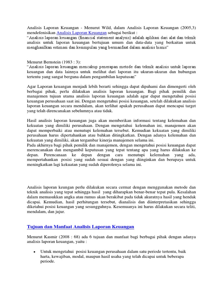Alat ukur melakukan efisiensi di semua departemen perusahaan. Tujuan dan manfaat analisis laporan keuangan menurut kasmir (2016: Analisis keuangan diperlukan agar laporan keuangan yang anda hasilkan tidak terbatas pada laporan semata.
