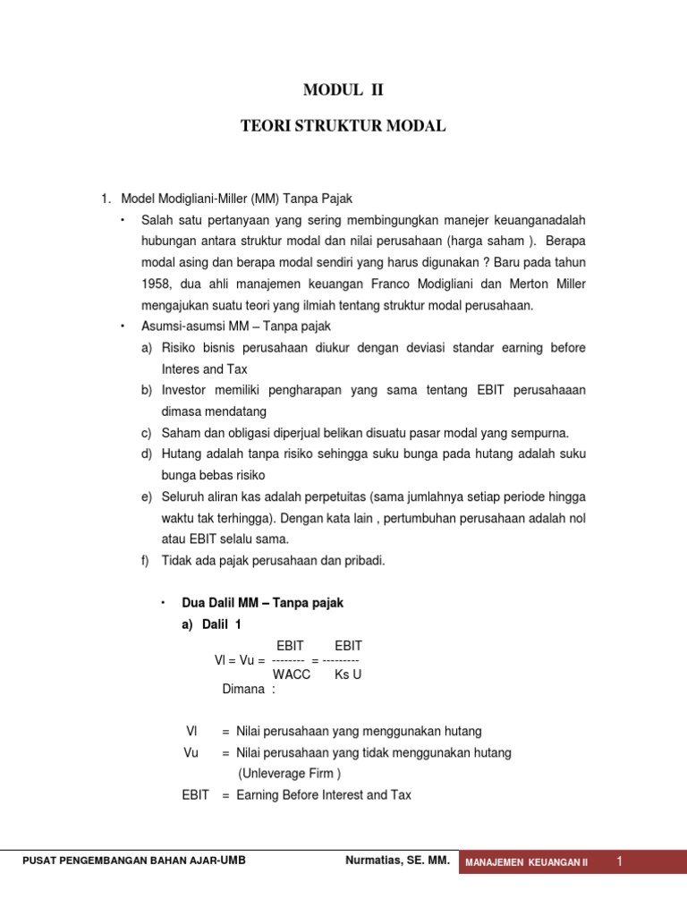 Teori Struktur Modal Manajemen Keuangan Pdf