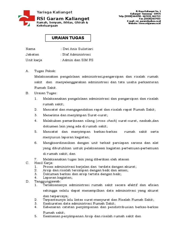 Tugas Staff Administrasi Rumah Sakit Guru Ilmu Sosial