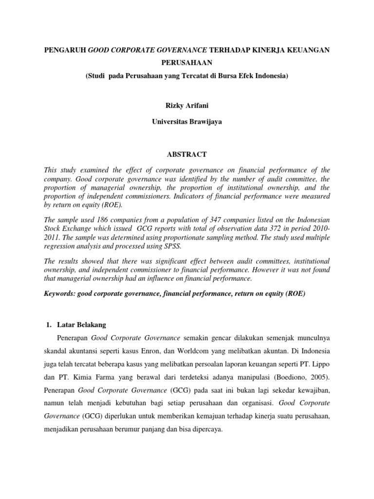 (PDF) Pengaruh Penerapan Good Corporate Governance