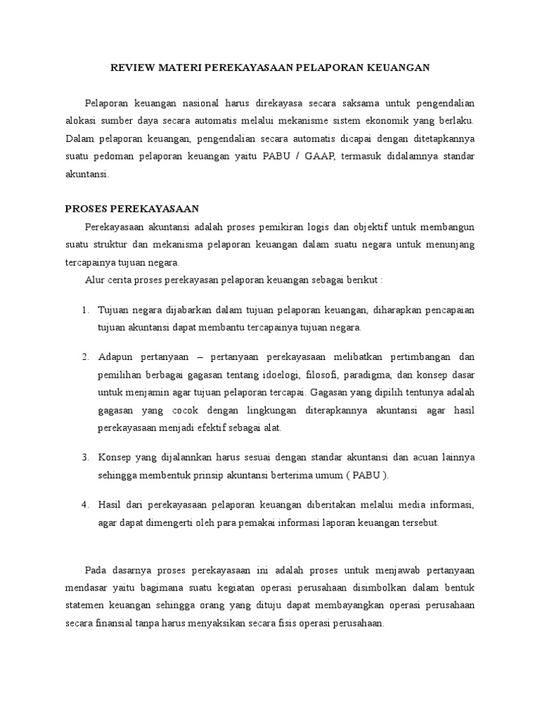 Ada banyak hal yang dapat di bahas dalam sebuah laporan keungan apa lagi jika akan menghadapi rat atau rapat. Perekayasaan pelaporan keuangan ini buku teks penuh bukan diktat atau terjemahan. Dalam pelaporan keuangan, pengendalian secara automatis dicapai dengan ditetapkannya suatu pedoman pelaporan keuangan yaitu pabu / gaap, termasuk didalamnya standar akuntansi.