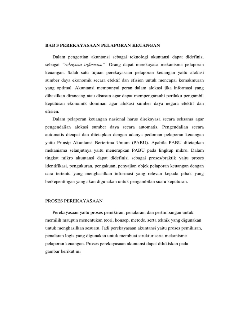 Perekayasaan pelaporan keuangan bab i pendahuluan pelapoarn keuangan merupakan struktur dan proses yang menggambarkan bagaimana informasi keuangan disediakan dan dilaporkan untuk mencapai tujuan pelaporan keuangan yang pada gilirannya akan membantu pencapaian tujuan ekonomik dan sosial negara. Perekayasaan pelaporan keuangan kelompok 1 ricky ramadhan (110221100097) puput fitriani. Perekayasaan pelaporan keuanganperekayasaan merupakan proses terencana dan sistematis yang melibatkan pemikiran, penalaran, dan pertimbangan untuk memilih dan menentukan teori, penngetahuan yang tersedia, konsep, metoda, teknik serta pendekatan untuk menghasilkan suatu produk.dalam perekayasaan pelaporan keuangan, akuntansi memanfaatkan.