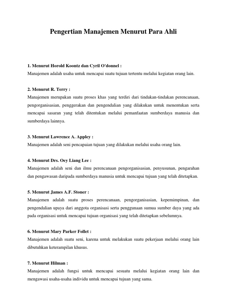 Pengertian Manajemen Menurut Para Ahli Dalam Bukunya