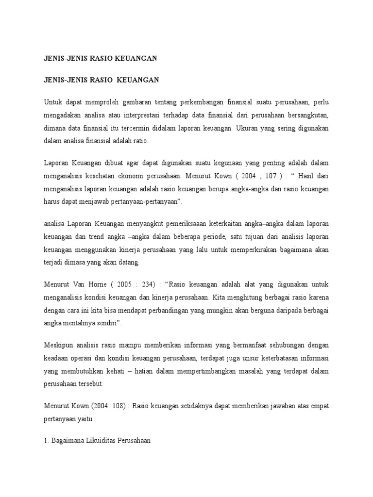 JenisJenis Rasio Keuangan PSYCHOLOGYMANIA