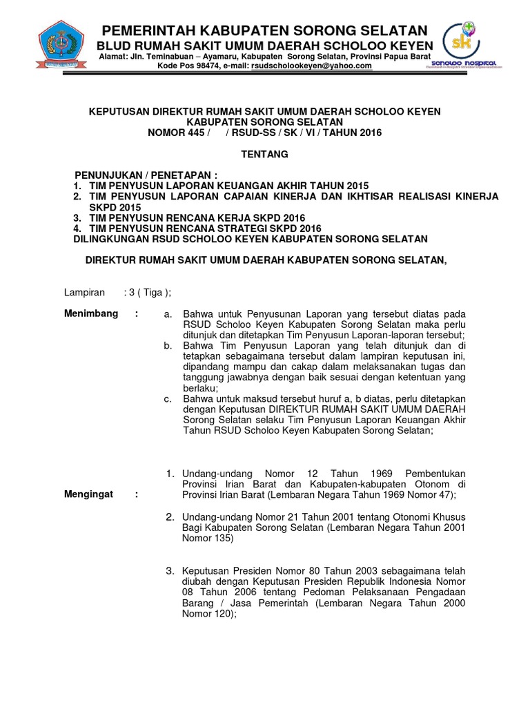 Sk Direktur Tim Penyusun Laporan Keuangan 2016