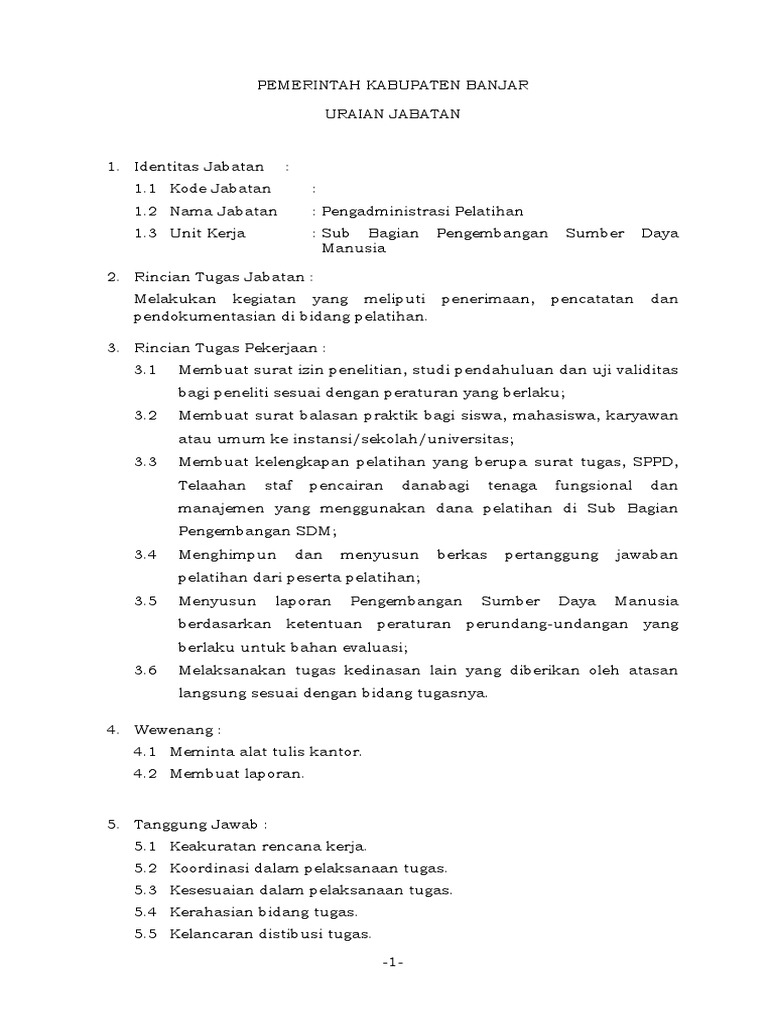 Contoh surat lamaran dan surat pernyataan tidak mengajukan pindah cpns formasi 2019 28 oktober 2020 10:24:39 wib 2,208 materi pokok soal seleksi kompetensi bidang (skb) seleksi cpns formasi tahun 2019 Adapun uraian tugas staf pengelola keuangan adalah sebagai berikut : 12 penata dokumen keuangan pengadministrasi keuangan 13 penata usaha pimpinan pengadministrasi persuratan 14 pengadministrasi akademik pengadministrasi akademik 15 pengadministrasi barang milik negara pengadministrasi umum 16 pengadministrasi belanja pegawai pengelola gaji (pendidikan d iii) 17 pengadministrasi gudang pengadministrasi umum.