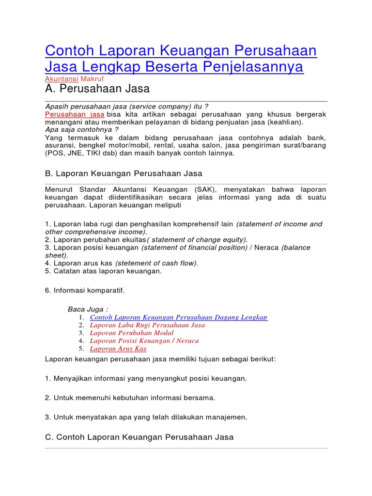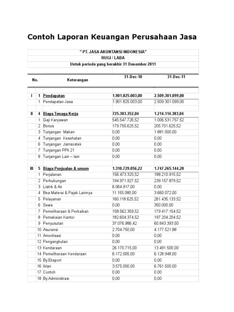 Contoh Laporan Keuangan Perusahaan Jasa Pdf